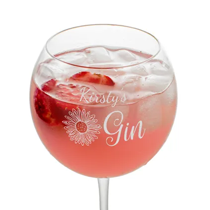 This lovely gin glass has an elegant stem and a large round bowl that can hold up to 58cl of your favourite gin cocktail. Personalise with any name above our stylish flower and gin design.
