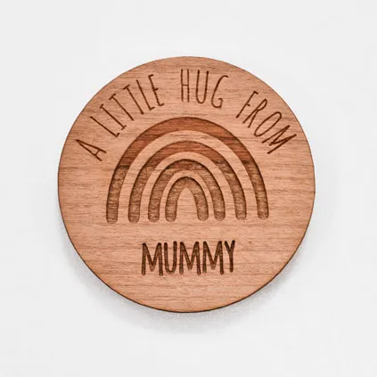 Let someone know how much you care with this personalised rainbow hug wooden token.