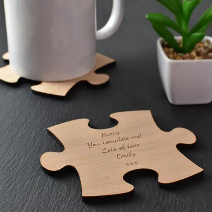 Show someone special how much they mean to you with one of our personalised puzzle piece coasters. This wonderfully rustic keepsake can be professionally laser engraved over 5 lines giving you plenty of space to add any message of your choice. Alternatively, they make great additions to any wedding or special occasion.