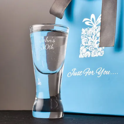 Celebrate any occasion with this personalised shot glass. These tall sambuca shot glasses are ideal for weddings, birthdays or any other special occasion.