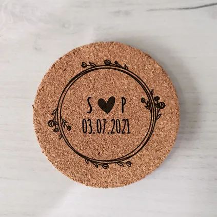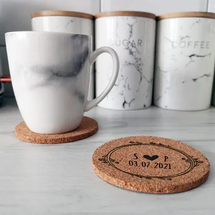 Celebrate any romantic occasion with these adorable personalised cork coasters for couples. These engraved coasters make wonderful little keepsakes that will look